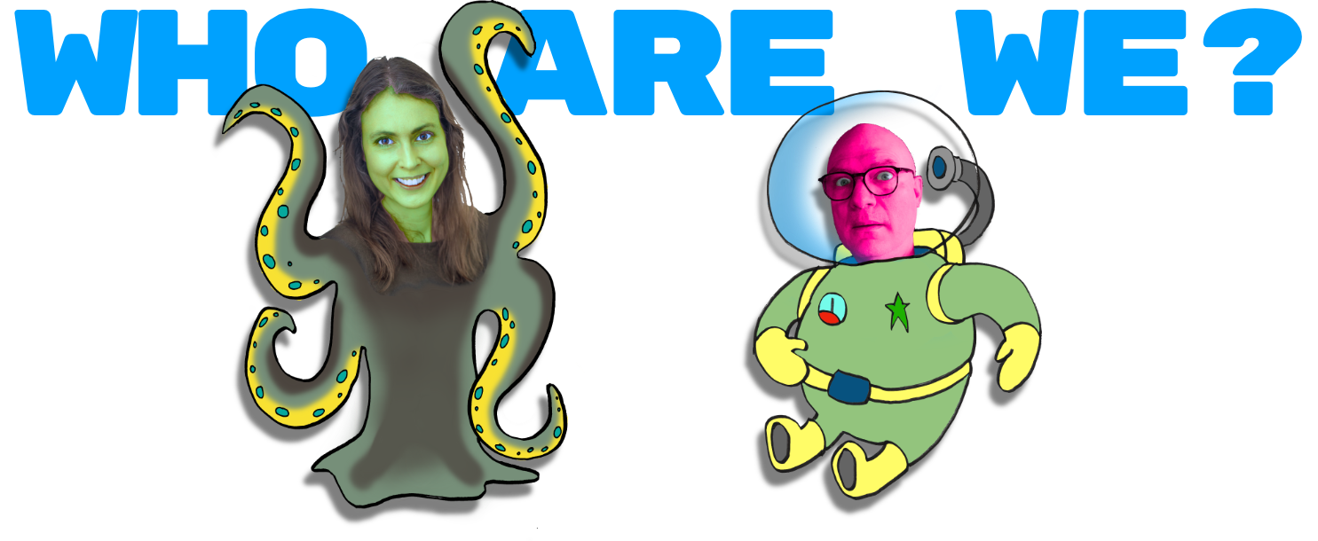 The green Quadropoid is Zoe. Zoe is an actor, writer, business executive, and winner of the 35th World Backgammon Championship's ladies tournament in Monte Carlo. David is that space-sick Pinkyphage on the right. He's a game designer, artist, and writer. David is also pink.